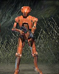 Разумная машина для убийства. Сразу очевидно, просто от одного его угрожающего появления, что HK-47 — гораздо больше, чем обычный боевой дроид. С разрушительным арсеналом мощного вооружения, безжалостным устремлением преследования и уничтожения его целей, и запрограмированным равнодушием ко всей органической жизни, эта модель Охотника-убийцы — одна из самых опасных убийц в галактике.