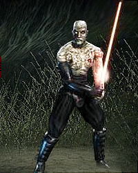 Его тело было разорвано и сшито из кусочков искалеченной плоти. Его скелет был разбит и восстановлен удивительным образом. Дарт Сион - это Лорд Ситов в вечной боли, его разбитое тело держится лишь благодаря странной силе воли. Только его ненависть и сила темной стороны помогают ему остаться живым.