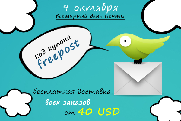 9 октября — бесплатная доставка всех заказов от 40 USD!