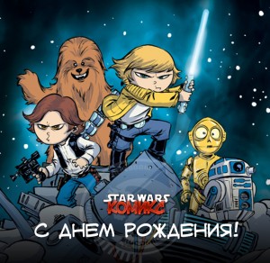 Вчера сайту SWComics исполнилось 7 лет, в связи с чем, по традиции, они всю неделю публиковали новые переводы: Лэндо #1, Кейнан #3, Лея #4, Star Wars #6, Вейдер #6 и Раздробленная Империя #1. Но главная новость в том, что в переводе SWComics из-во АСТ будет издавать комиксы по ЗВ на русском языке — когда именно, не очень ясно, но в планах «Заря джедаев», «Дарт Вейдер и тюрьма-призрак», «Дарт Мол» и другие серии. Какие именно, можно будет угадать по надписи «Серию в данный момент выпускает издательство АСТ» вместо убранного перевода именно того комикса, который вам больше всего нужен в данный момент.