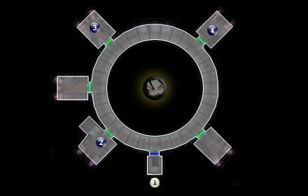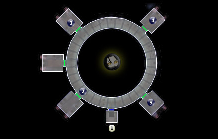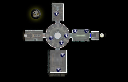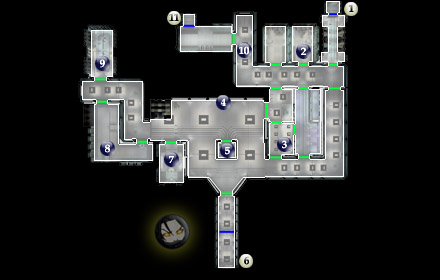 Охраняется двумя защитными турелями, которые можно отключить через терминалы в #2, #3 и #6. Внутри найдете огнемет (Flame Thrower), расщепитель луча (Beam Splitter) и энергоусилитель (Energy Projector).
