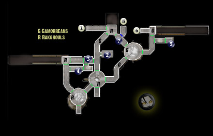 Войдя в эту комнату, вы окажетесь втянутыми в разговор, в котором вам предстоит сделать выбор, на чьей стороне вы окажетесь. Можете предать Беков, избежав неприятностей здесь (но, несомненно, приобретя их в другом месте) и получить пункты Темной стороны. А можете отказать Вулькарам, в таком случае вам предстоит бой с двумя сильными бойцами ближнего боя и двумя бойцами, атакующими с расстояния.