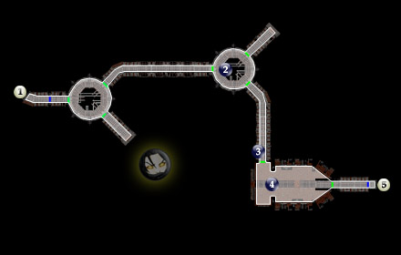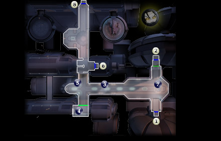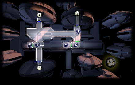 Здесь вы найдете смарт-карту начальника гаража («Garage Head Key Card»), которая позволит вам пройти куда угодно, за исключением шлюза. Взломайте компьютер, стоящий здесь, и выполните команду «Открыть все двери» («Disable all Security Doors»). Таким образом вы обеспечите себе доступ как к шлюзу (#5), так и в лабораторию двигателей (#7), где вы встретитесь с одним из боссов Черных Вулькаров Кендоном Арком (Kandon Ark) и его бригадой. В столе, кроме того, вы найдете модернизированную энергоячейку (Improved Energy Cell).